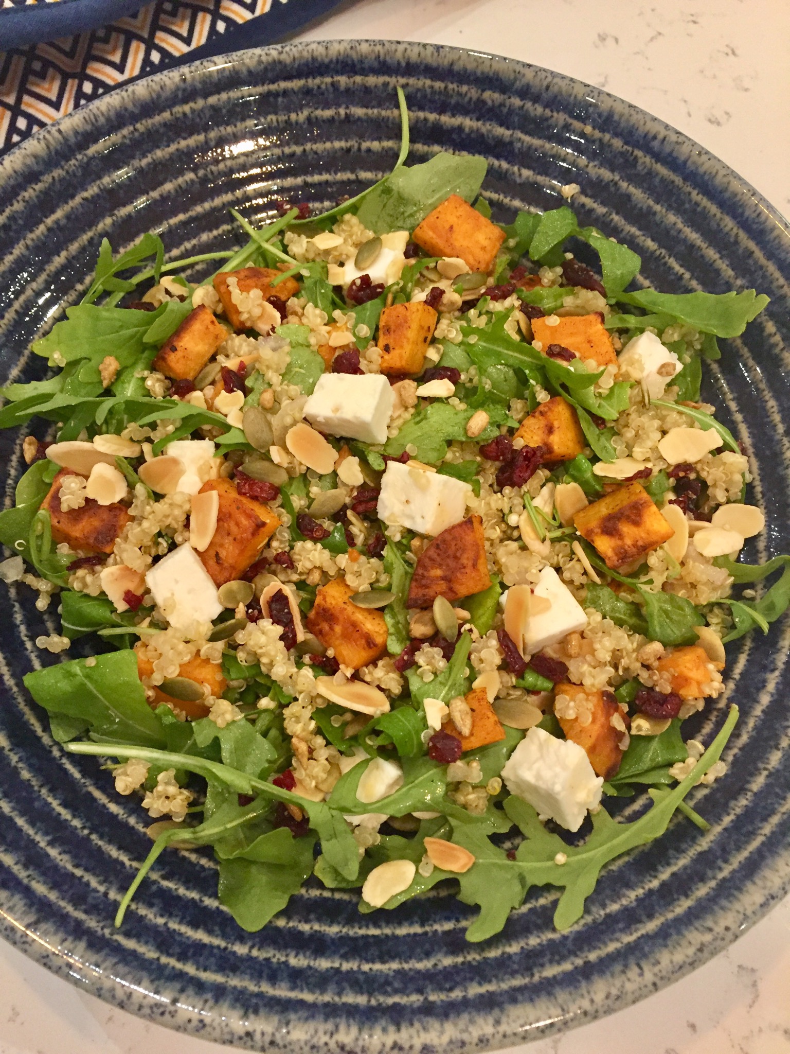 If you like to meal prep lunches in advance this salad is a great option as it holds well in the fridge for up to 3 days. It’s high in fibre and prebiotics which help to maintain a healthy gut. Chick peas are a good source of plant based protein and iron and keep you full for hours. The olive oil delivers heart healthy fats whilst the colourful veg delivers a variety of vitamins and antioxidants. Now that’s food to feel good about.